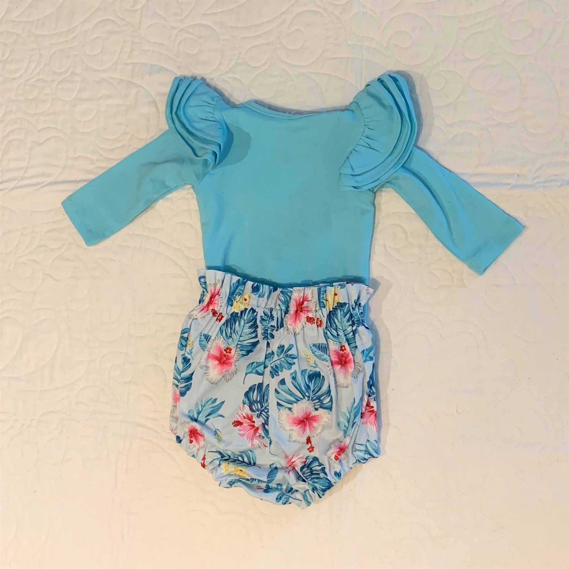 2 Piece Set - High Waisted Nappy Cover with Sash Bow & ReadyMade Long Sleeve Bodysuit