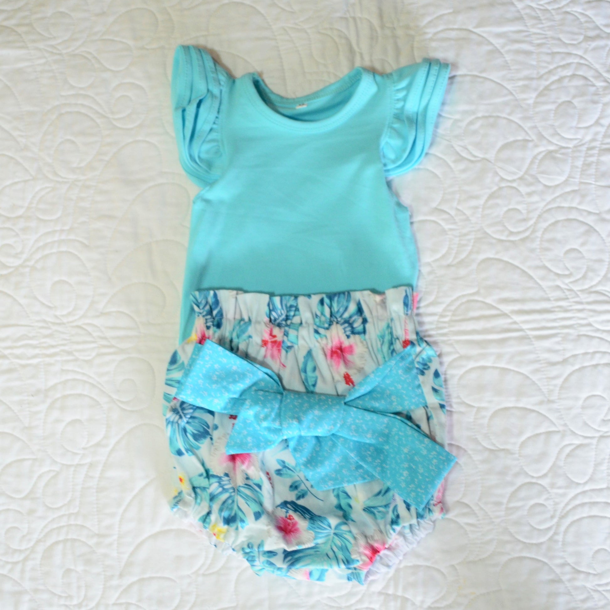2 Piece Set - High Waisted Nappy Cover with Sash Bow & ReadyMade Flutter Bodysuit